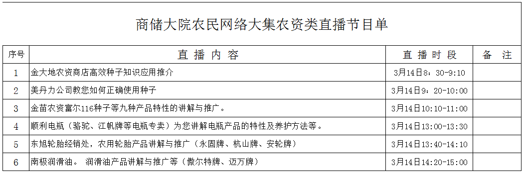 农民网络大集农资类直播节目单